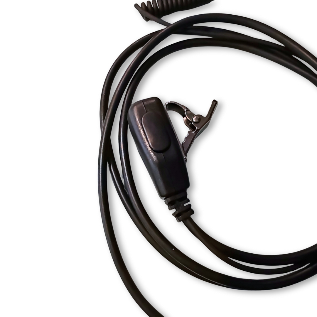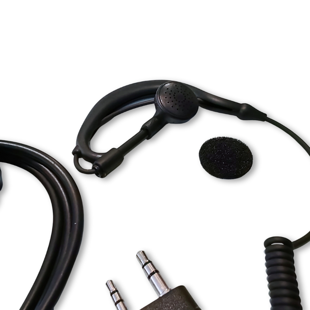C-lenkillinen headset radiopuhelimeen. Korvan yli tuettu malli on mukava käyttää ja pysyy hyvin korvassa. Painikemikrofoni klipsillä. Mukana 1kpl korvanapin suojavanu.