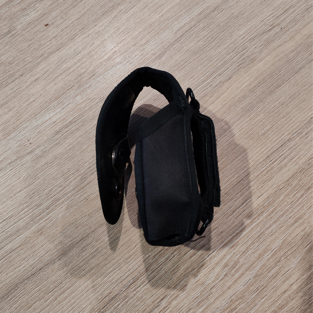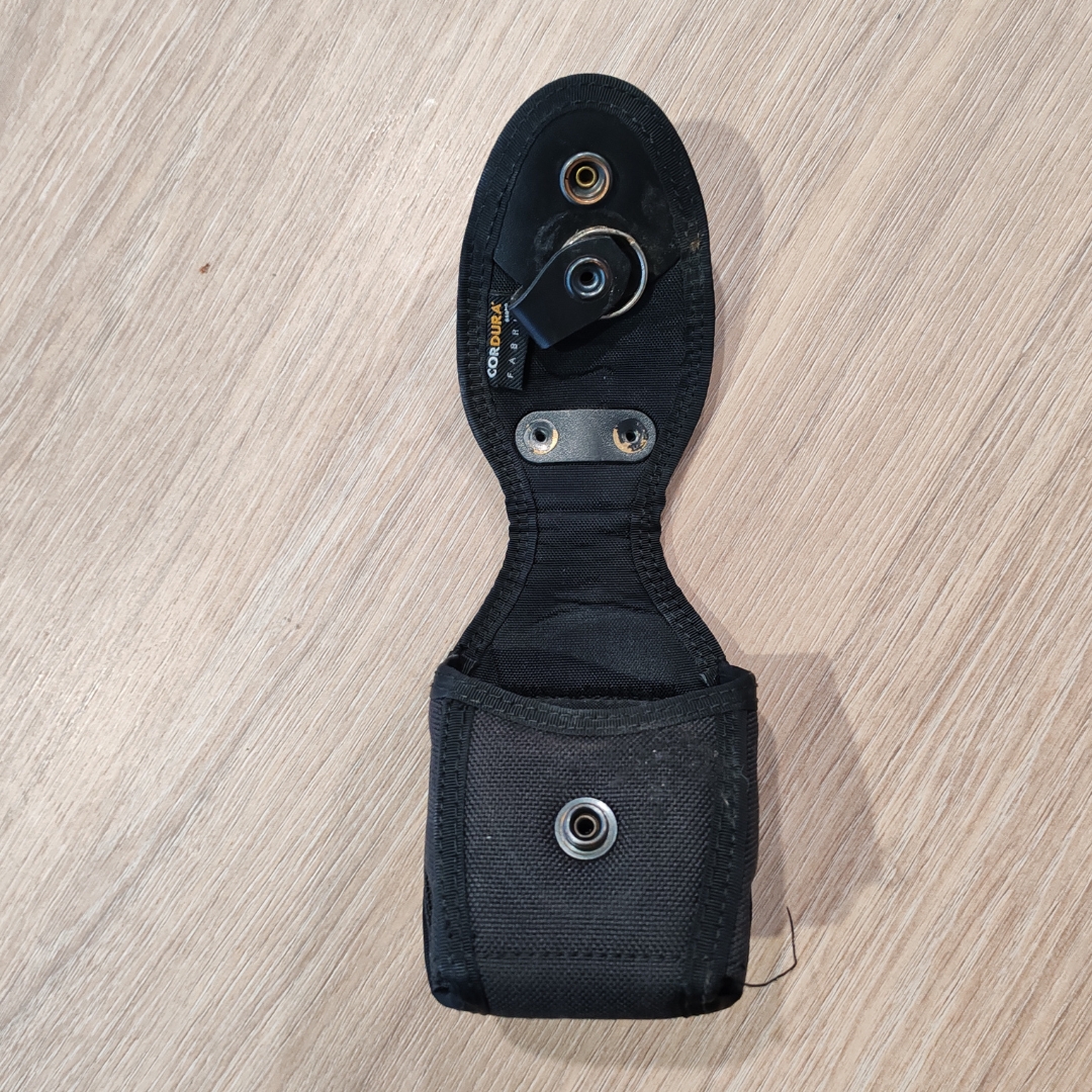 GK Pro käsirautakotelo. Kestävää Condura-kangasta. Kotelon sisällä on myös pidike vara-avaimelle, joten avain kulkee myös kätevästi aina mukana.